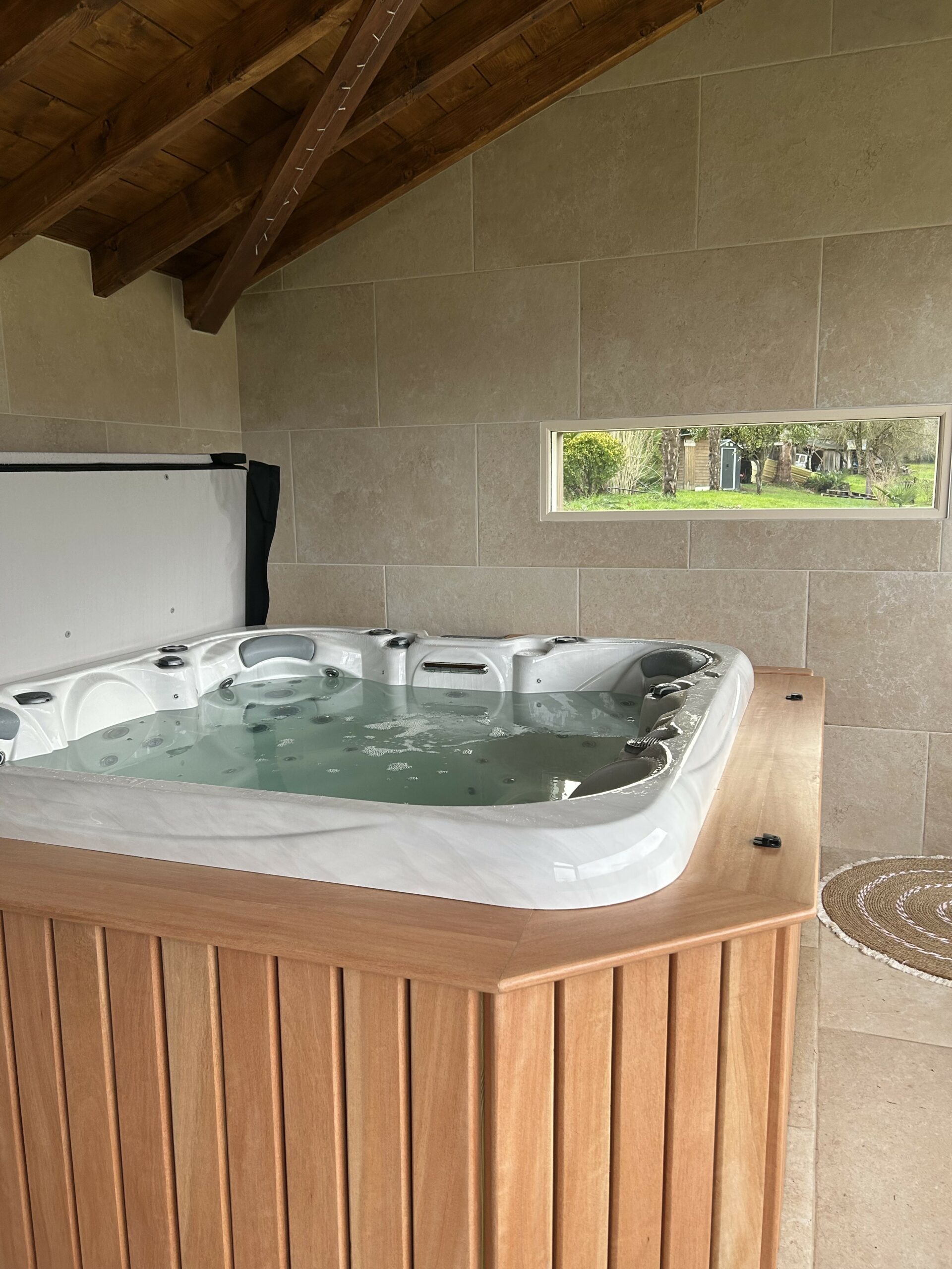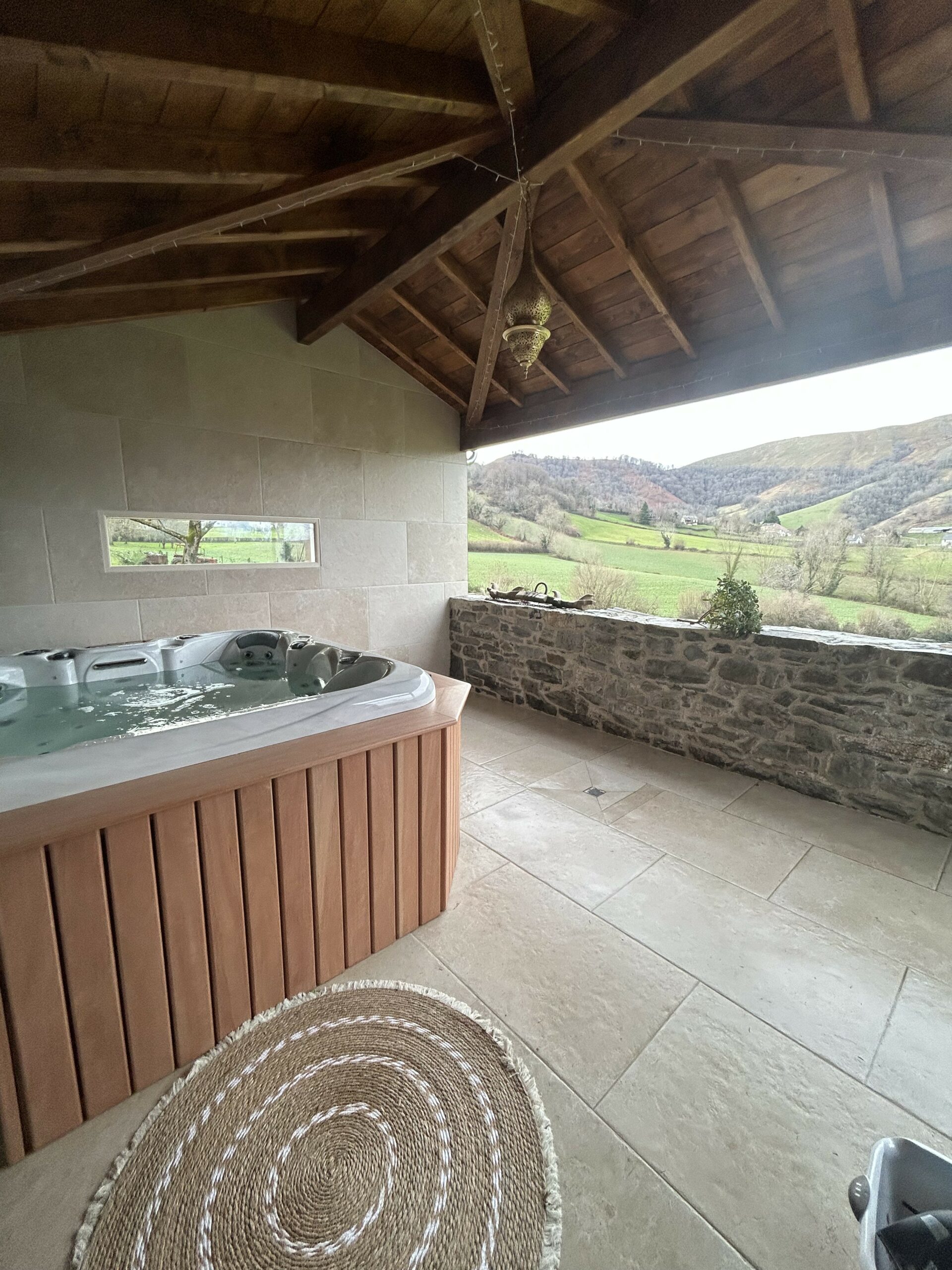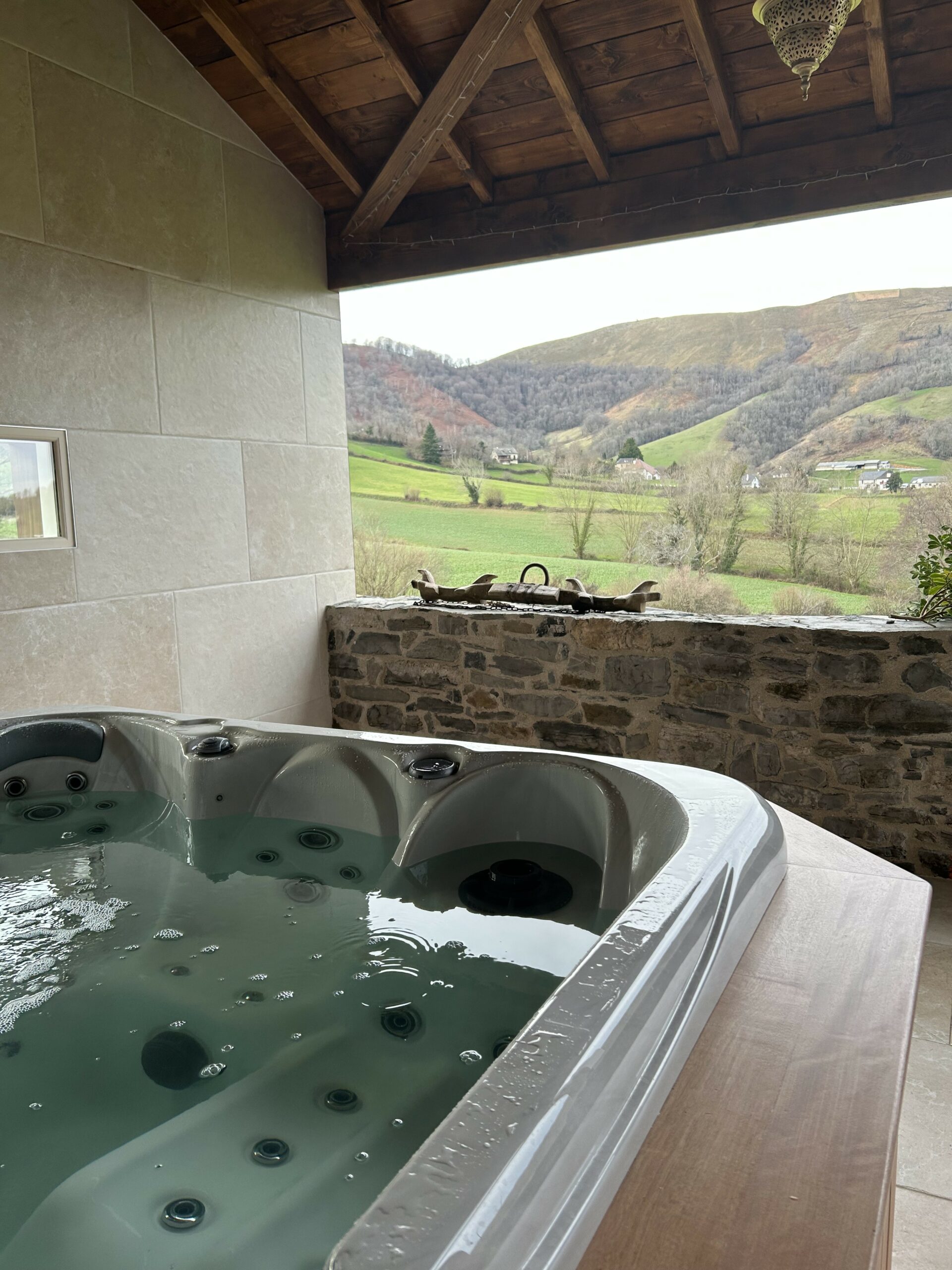 The Jacuzzi area in an intimate setting facing the mountains.